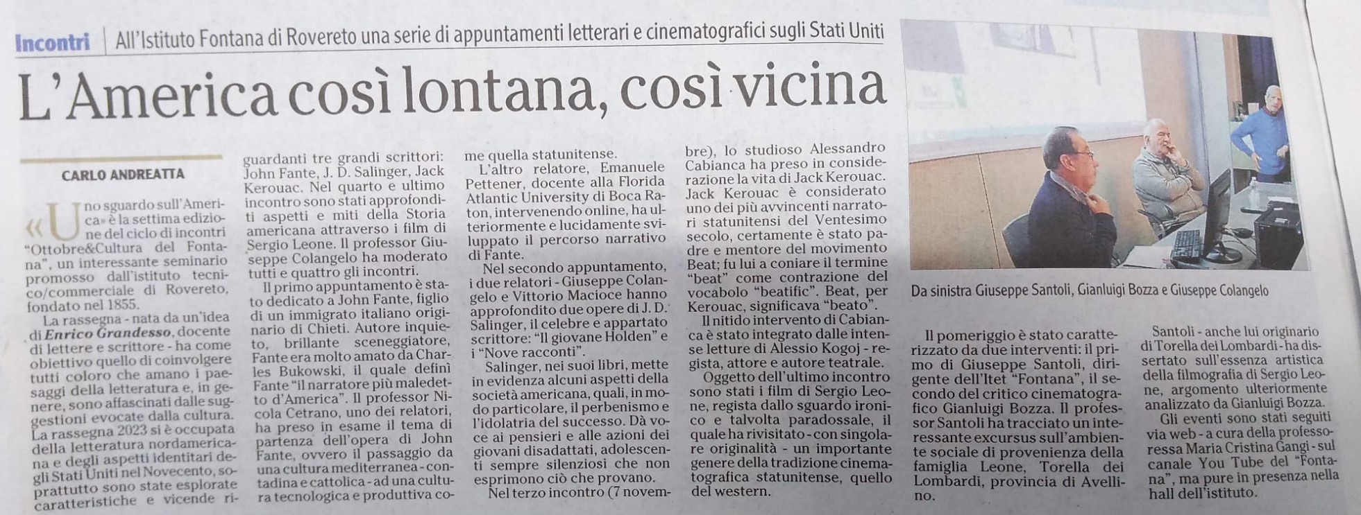 Serie di appuntamenti letterari - articolo de l'Adige del 09-12-2023