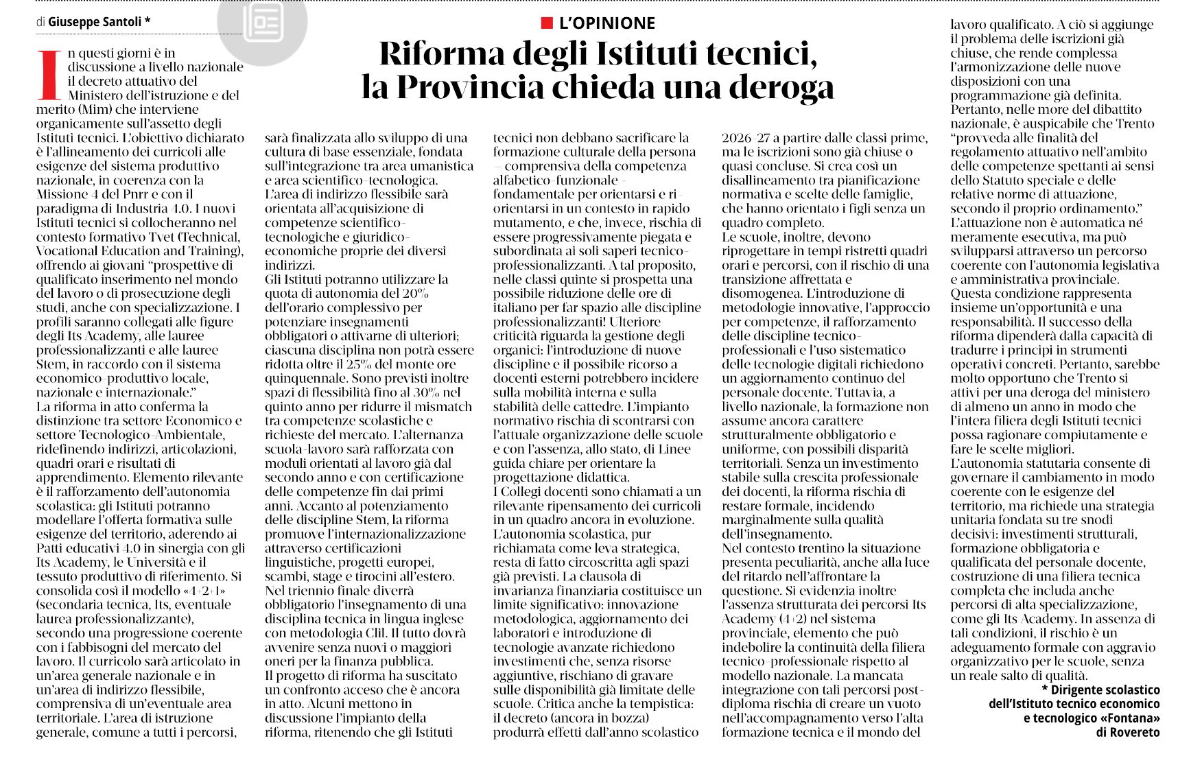"Riforma degli Istituti Tecnici, la Provincia chieda una deroga"