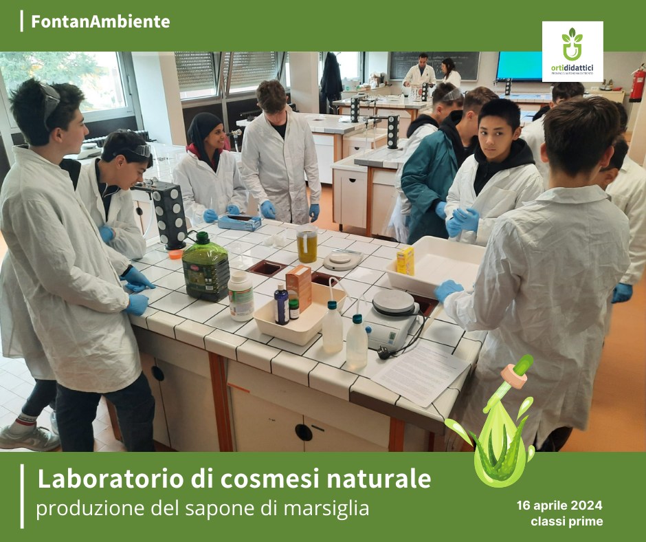 La fase pratica, invece, è stata ampliata: oltre alla semina, alla cura delle piante dell’orto della scuola e alla loro distribuzione alla Comunità scolastica e a quella cittadina locale durante la settimana FontanAmbiente, gli studenti hanno imparato a produrre il sapone di Marsiglia profumato con oli di piante.